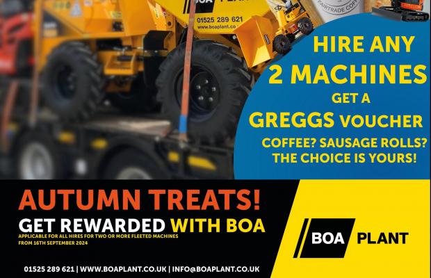 Hire ANY 2 machines from our fleet starting September 16th, and we'll serve up a Greggs voucher on the side. Perfect for grabbing a hot coffee or a pack of delicious sausage rolls to keep you and your team fuelled through the long mornings.